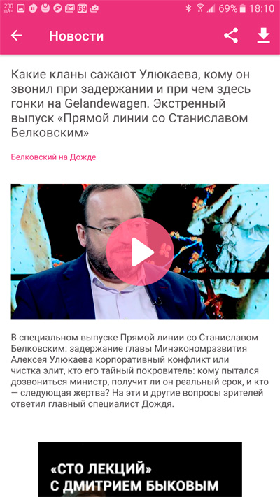 Например, в приложении "Дождя" вы можете просматривать архивную передачу, а можете прослушивать ее.