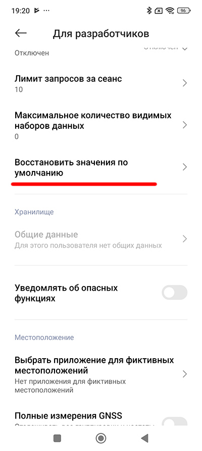 Это Настройки - Расширенные настройки - Для разработчиков. Там будет куча пунктов, листаем вниз до самого конца, потом немного поднимаем список вверх и находим пункт "Восстановить значения по умолчанию".