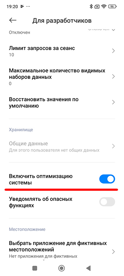 С выключенной оптимизацией MIUI превращается в Андроид первых версий, который еще не умел управлять активностью фоновых приложений.