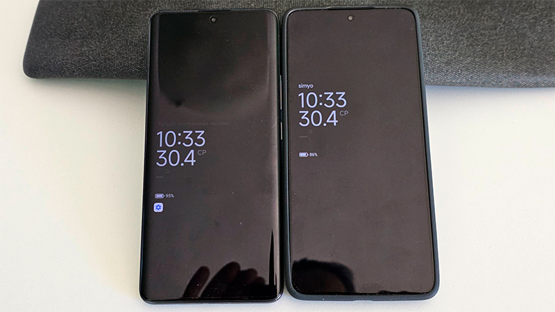 Вот снимок: слева смартфон Redmi Note 14 Pro, у которого урезанный режим AOD, и Xiaomi 14, у которого полноценный AOD. У обоих смартфонов AOD теперь не выключается (у Redmi Note 14 Pro я проделал вышеуказанные манипуляции).