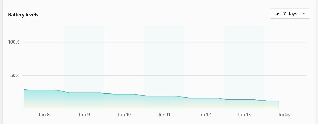 Но! Ниже есть раздел Battery capacity history и там можно посмотреть историю с момента установки ОС, и там объем зарядки пляшет туда-сюда 😄 Хотя тренд за 2 года на уменьшение.