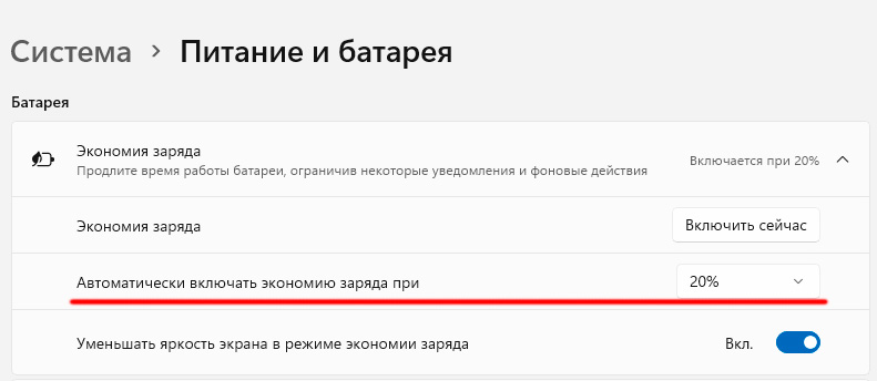 11 винда сама заботится о батарее. Пишет, зарядка приостановлена для бла-бла-бла, таки хотите зарядить до 100 то заклинание такое-то.