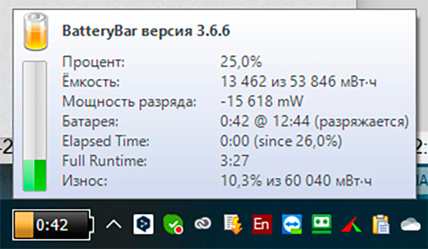 Также, конечно же, есть самые разнообразные приложения, показывающие ёмкость, степень износа батареи и так далее. Например, бесплатная (у неё есть и копеечная платная версия, расширяющая возможности) BatteryBar.