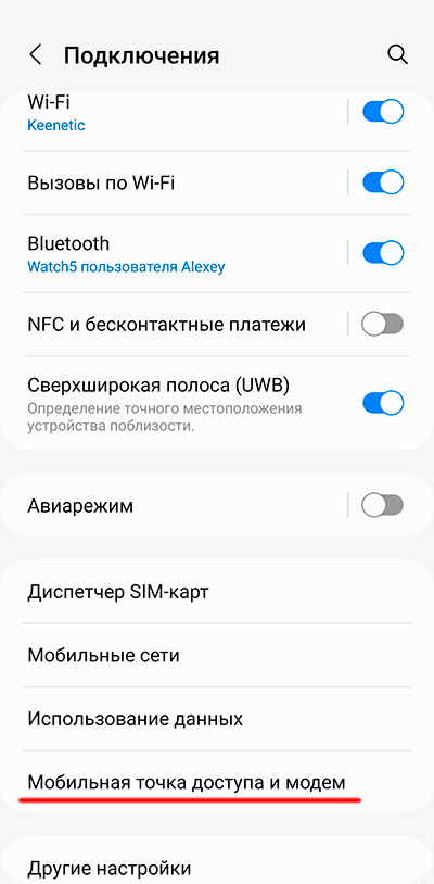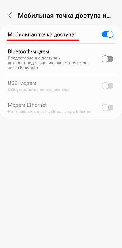 Для смартфонов на Android в настройках беспроводной связи нужно искать что-то вроде "Мобильная точка доступа", "Точка доступа Wi-Fi" и так далее.