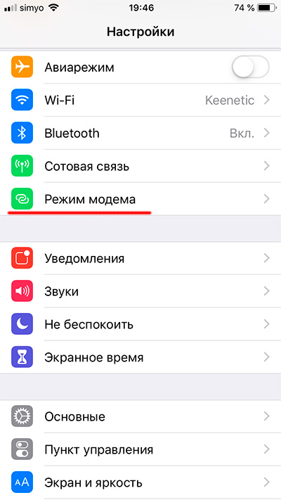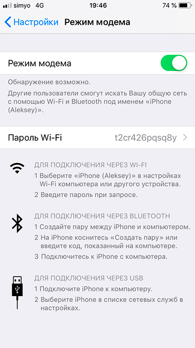 И вот как это выглядит на айфоне. Там это называется "Режим модема".