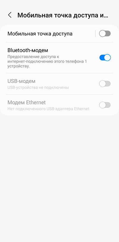 Ну, так себе вариант. Учитывая небольшую дальность подобного подключения, непонятно, зачем это вообще все нужно при наличии Wi-Fi. Но оно все-таки существует: в настройках точки доступа можно выбрать Bluetooth-модем, после чего другие устройства могут подключаться к данному смартфону по Bluetooth для доступа в Сеть, но это все будет работать на расстоянии до 10 - в лучшем случае - метров.