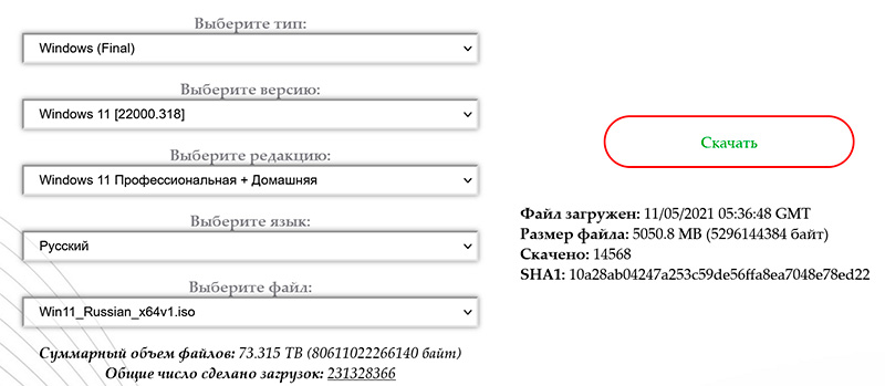 Eщё один способ, позволяющий не только получить образ ISO нужной версии, но и скачать инсталлятор Windows 11, который установится без проверок на совместимость компьютера. Делается это с помощью утилиты Universal Media Creation Tool.