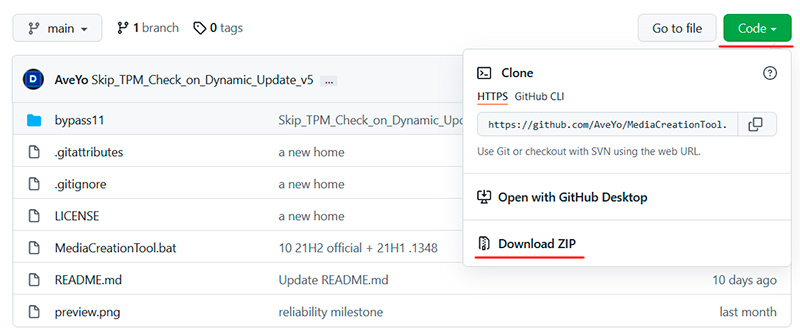 Скачать утилиту нужно отсюда. На странице по ссылке нажать кнопку Code, там выбрать Download ZIP, скачать архив и разархивировать его в любую папку.
