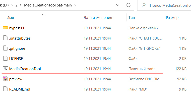 После этого запустить из этой папки пакетный файл MediaCreationTool.