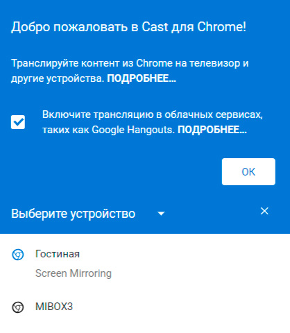 Также вы можете выводить на экран изображение с браузера Google Chrome, установленного на ПК. В настройках выбираете "Трансляция".