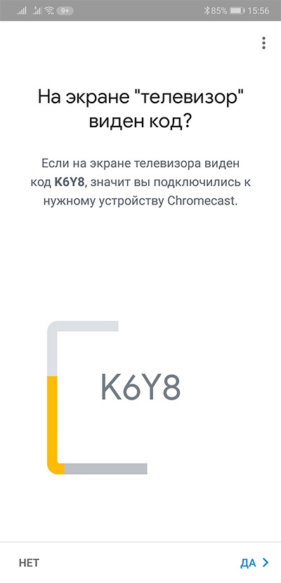 После этого на экране телевизора будет выведен код. Если он совпадает с кодом на экране смартфона - нужно подтвердить подключение.