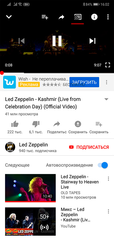 При этом на смартфоне оно воспроизводиться не будет (и не должно), но с него можно управлять громкостью, запускать/останавливать, также можно ставить ролики в очередь на воспроизведение. Кроме того, вы на смартфоне можете вообще заняться какими-то другими делами - на воспроизведение отправленного в Chromecast потокового видео это не влияет.