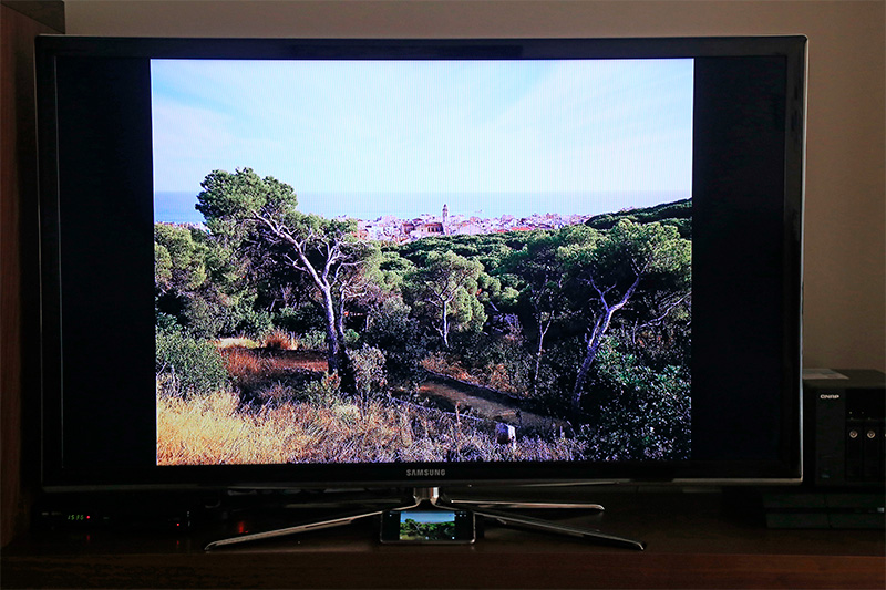 На изображении ниже - трансляция фото на экране телевизора. Цвета на экране, кстати, передаются нормально, это фотоаппарат исказил.