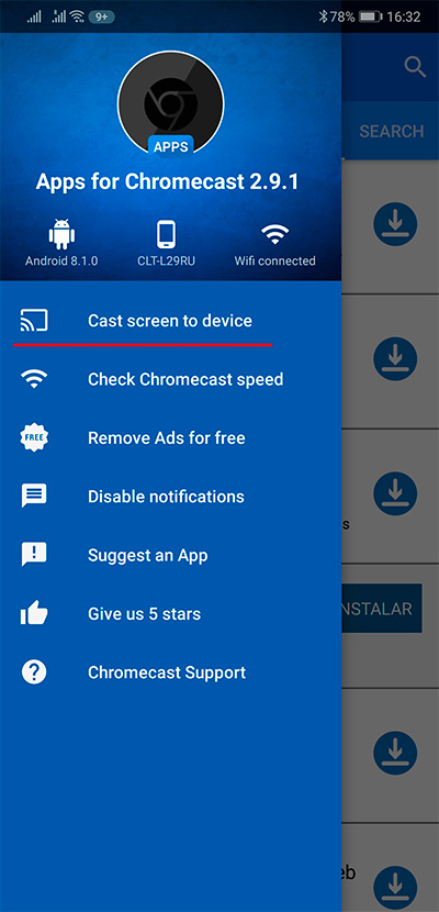 Кроме трансляции медиаданных из программ с поддержкой Chromecast есть еще способ полностью "зеркалить" изображение со смартфона в телевизоре. Делается это в той же программе Apps For Chromecast.