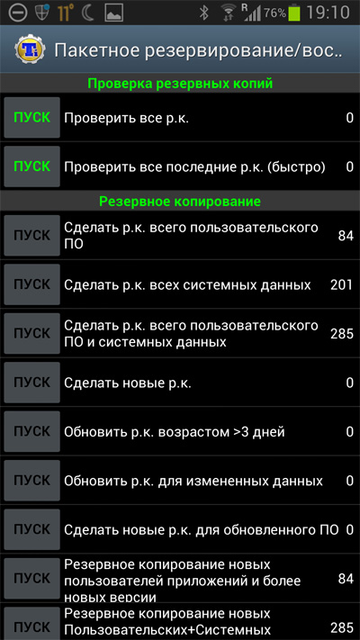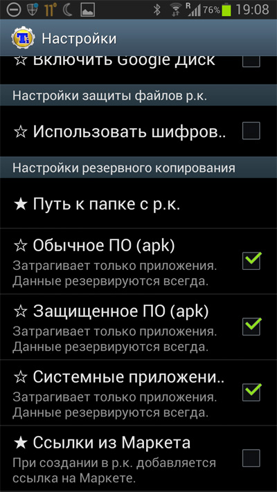 С аппаратом, у которого получены права суперпользователя (то есть сделан так называемый root), возни - на порядок меньше. Нужно установить программу Titanium Backup (или любую другую аналогичную, однако именно Titanium Backup является одной из лучших в этом плане, если не самой лучшей). Эта программа умеет делать полный бекап любых приложений и их настроек - как пользовательских, так и системных. Бекапы могут делаться вручную, могут делаться автоматически, папку для бекапов выбирает сам пользователь.