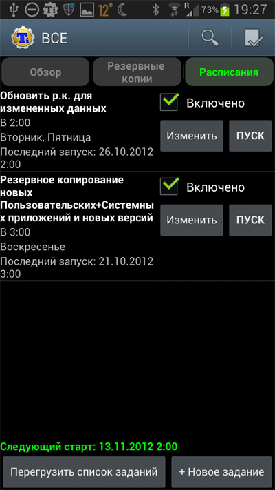 Titanium Backup также поддерживает архивирование по расписанию, причем оно включается по умолчанию. Если вам надо поменять параметры расписания - это можно сделать в соответствующей закладке.
