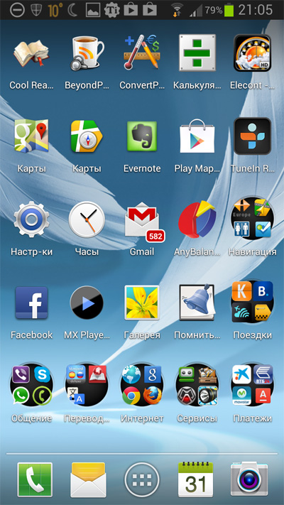 3. настройки оболочки (лончера) - рабочие столы, папки и так далее;