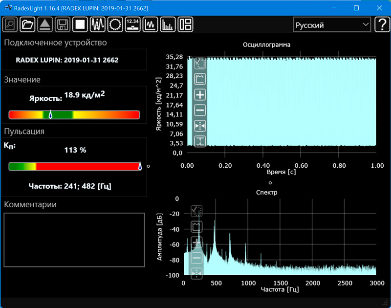 Пример измерения пульсации у смартфона, где при ШИМ зашкаливает даже при 30-процентной яркости
