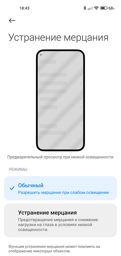 Опция снижения мерцания имеет драматический эффект при скорлинге на темном фоне, на xiaomi заметил.