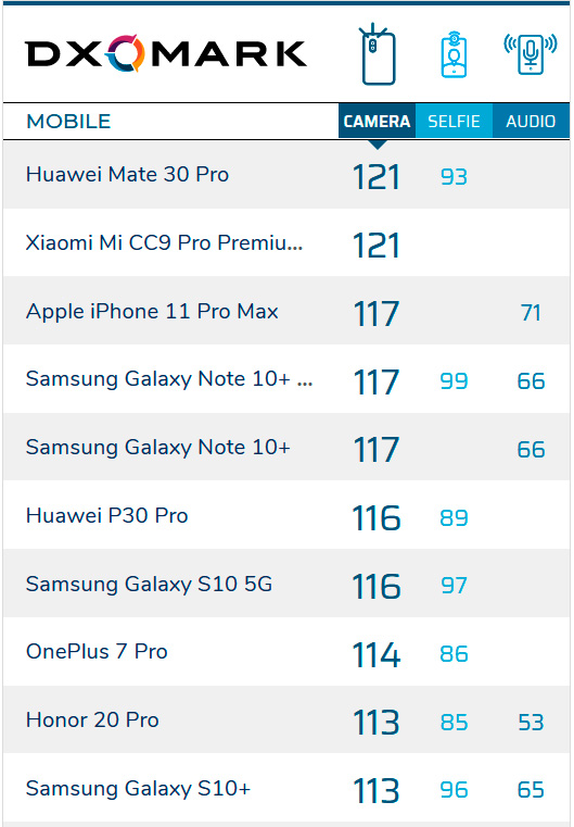 Если вы хотите посмотреть на рейтинг смартфонов по камерам, это лучше всего делать на сайте DXOMark - вот рейтинг смартфонов. А вот первая десятка.