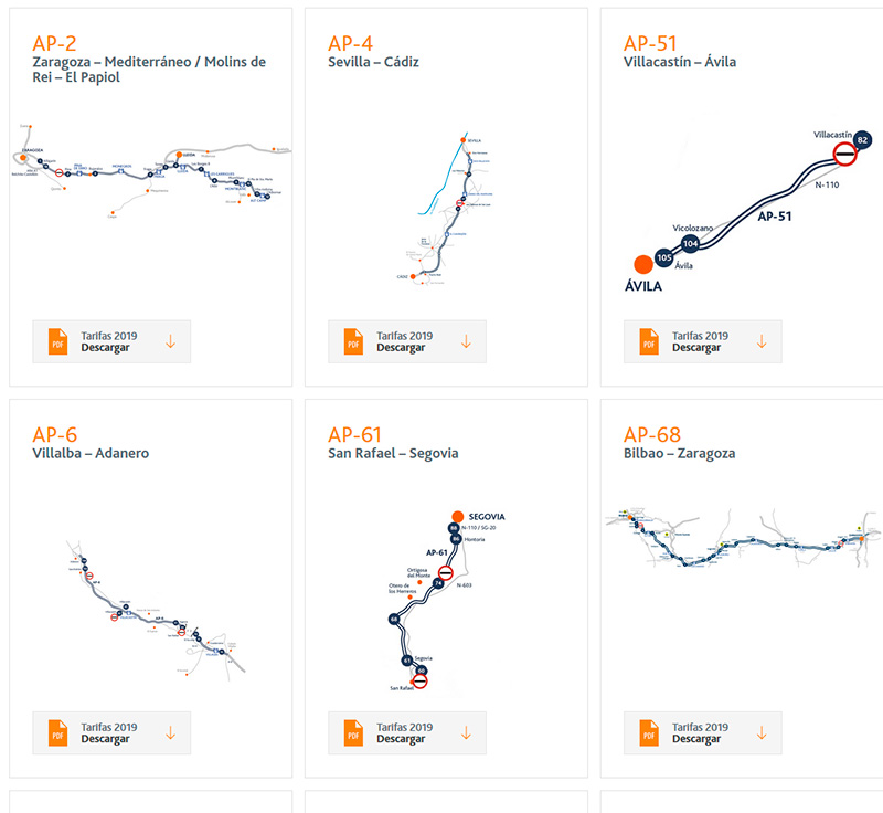 Подробные тарифы на каждый участок можно посмотреть здесь (исп.).