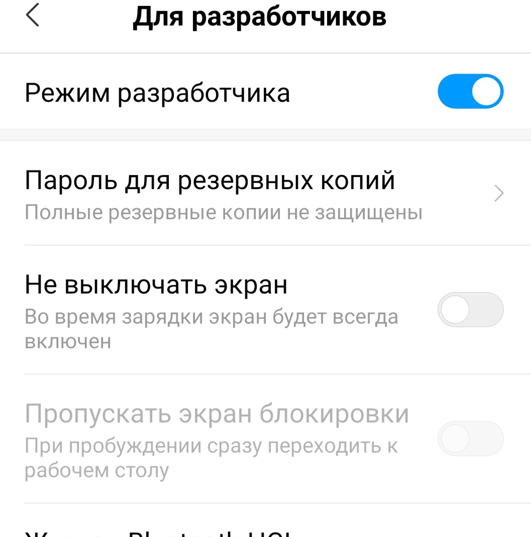 После этого режим разработчика станет доступен в "Настройки - Расширенные настройки". И там включить "Пропускать экран блокировки".
