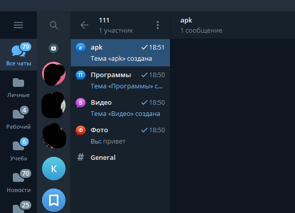 Далее в этот чат можно писать заметки или пересылать информацию из других чатов или каналов так же, как в "Избранное".