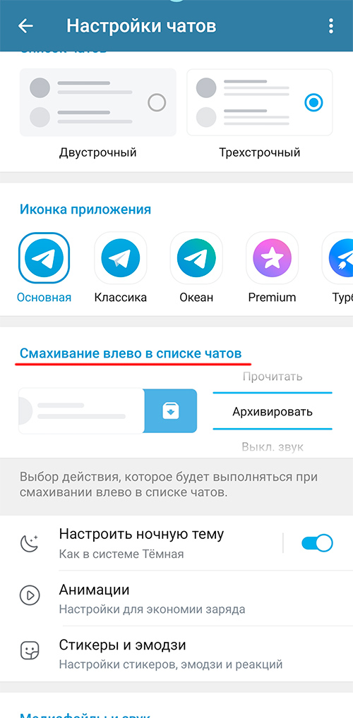 Ну и надо понимать, что вы сами можете определять действие по смахиванию влево на каком-то чате.