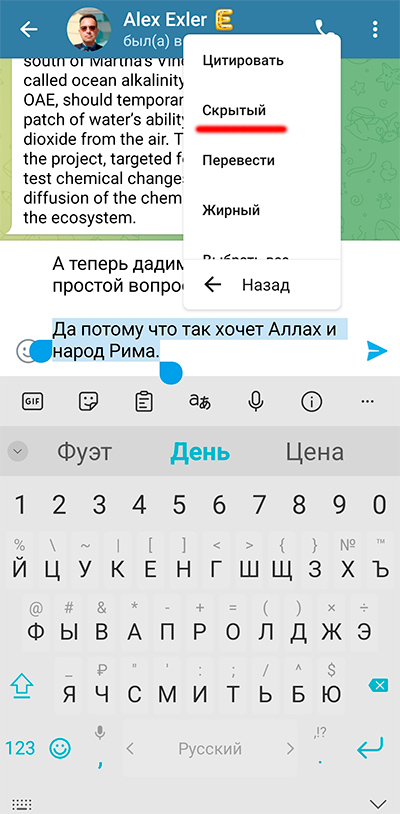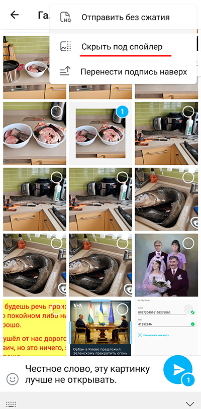 В определенных случаях может потребоваться скрыть текст (грубо говоря, спрятать под спойлер), который вы хотите отправить в сообщении абоненту или в канал.