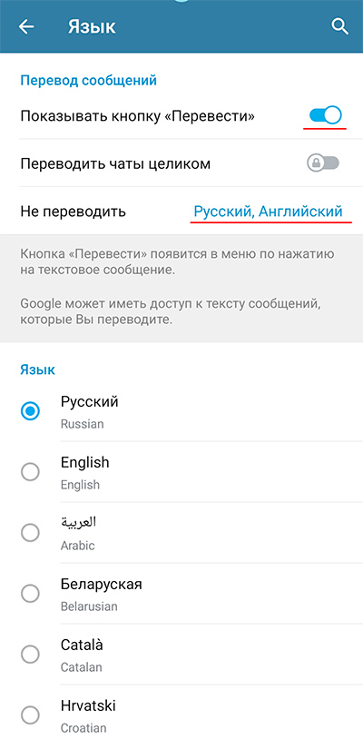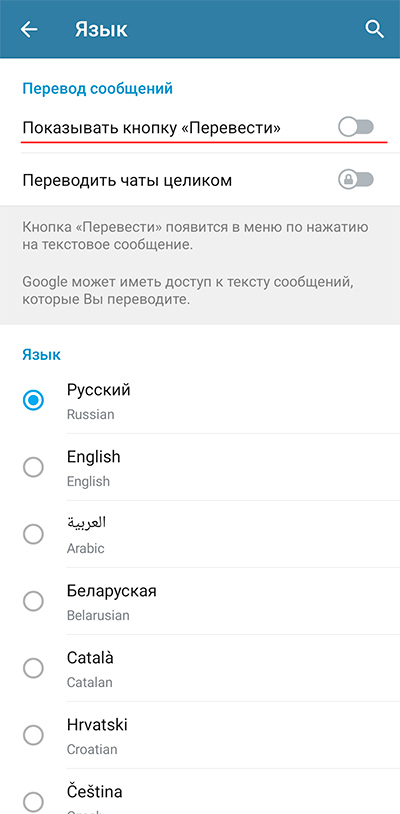 А запрятали ее в раздел "Настройки - Язык". Вы часто меняете язык интерфейса Telegram? Да, наверное, никогда не меняете. Поэтому и настройку эту не видите. А она есть!