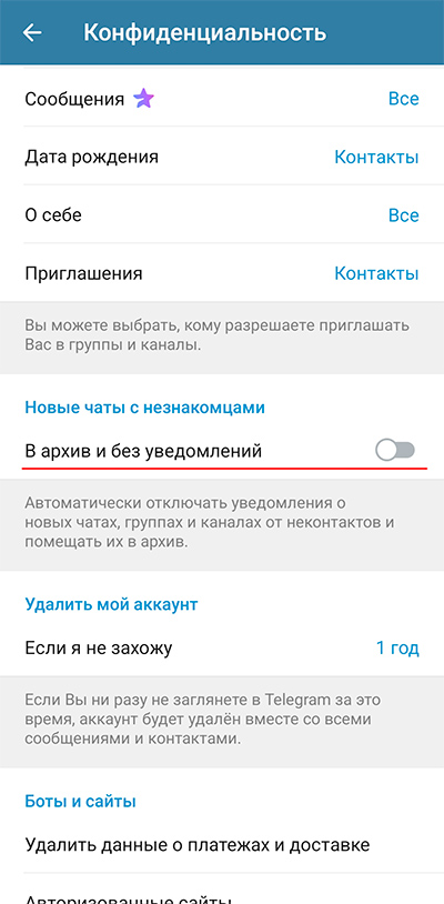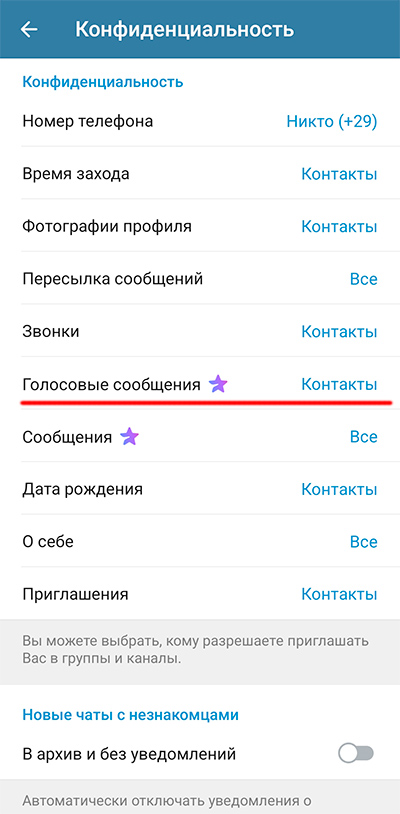 У пользователей с подпиской можно ограничить прием голосовых сообщений. Также они могут автоматом архивировать чаты с незнакомцами и отключать уведомления о таких чатах.