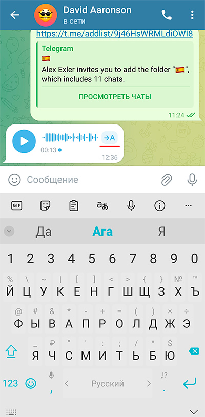 У подписчиков на значке аудио- или видеосообщения появляется специальный значок, после нажатия которого сообщение будет распознано и выведено в виде текста - иногда это бывает очень удобно, когда нет возможности прослушать сообщение, а нужно узнать, что в нем.