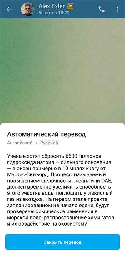 Насколько было бы удобнее, если текст на незнакомом языке в чатах/каналах можно было бы сразу переводить, правильно?
