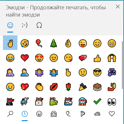 Комбинация клавиш Win+. вызывает появление окошка со смайликами Windows, которые можно использовать практически где угодно (особенно это удобно для каких-то сервисов с перепиской, где смайлики вообще не предусмотрены). Смайликов там немало, они разбиты на шесть групп.