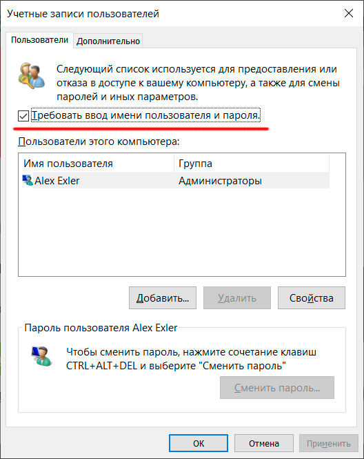 Нажмите Win+R, в окошке "Выполнить" вбейте вот эту строчку - netplwiz. Появится вот такое окно.