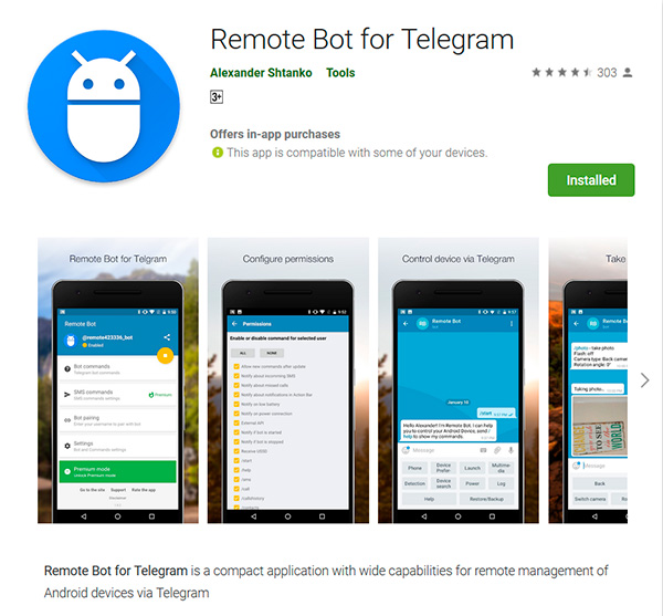 Способ первый - очень простой, но платный. Программа Remote Bot For Telegram под Android.