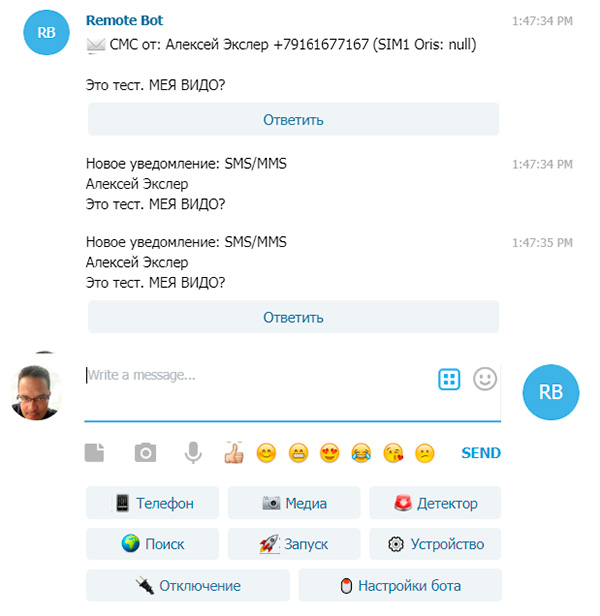 Повторюсь, этот бот умеет запрашивать и получать с удаленного смартфона кучу самой разнообразной информации, но мы это потом как-нибудь рассмотрим отдельно.