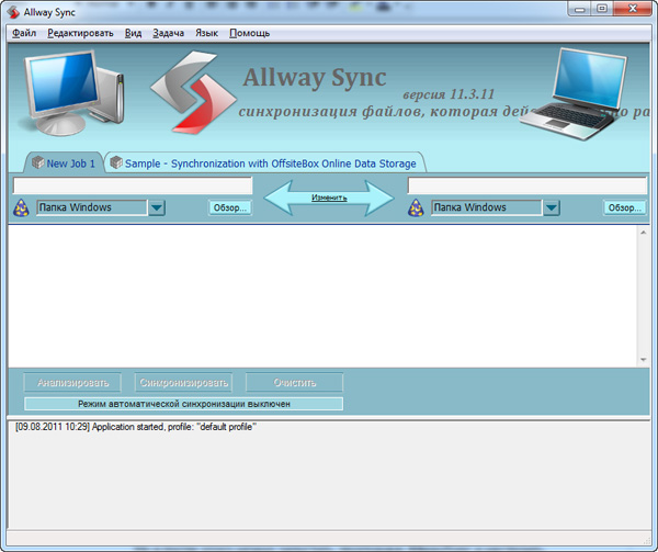 Ну и после этого можно запустить программу AllwaySync и настроить синхронизацию. (Все большие скриншоты ниже - кликабельны для увеличения.)
