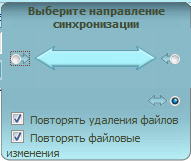 Далее нужно настроить вид синхронизации, нажав на двойную стрелку, находящуюся между заданными папками.