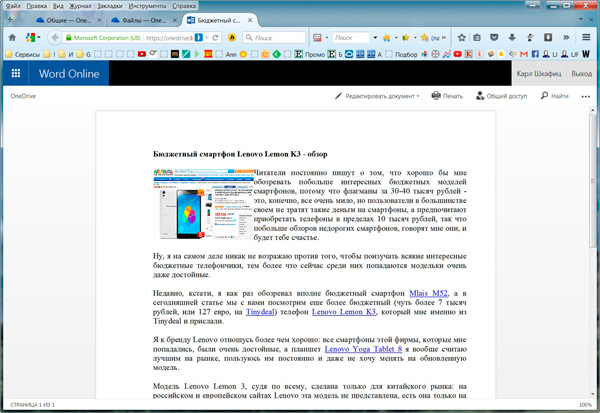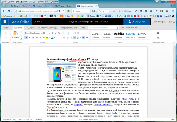 Далее вашему абоненту остается просто щелкнуть по ссылке - и у него эта статья появится для чтения в онлайновой версии Word.
