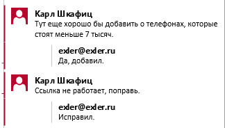 На примечания можно отвечать, и там всегда видно, кто какие примечания делал.