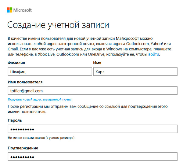 Если у вас уже есть учетная запись Microsoft, то в OneDrive можно войти с этой учетной записью, а если нет - просто создайте эту учетную запись: для этого потребуется указать какой-нибудь работающий e-mail, к которому у вас есть доступ.