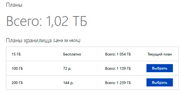 По умолчанию бесплатно вам выделяют в облаке 15 Гб пространства, что вполне хватит для фото и документов. Однако если вы используете план Office 365 (а я именно его и использую буквально с первого дня появления - это очень удобно), где за 286 рублей в месяц или 2874 рубля в год вам предоставляются Word, Excel, PowerPoint, OneNote, Outlook, Publisher и Access, причем вы можете их устанавливать для пяти пользователей на пяти компьютерах, пяти планшетах и пяти смартфонах, то с этим планом для каждого пользователя в OneDrive выделяется аж 1 Тб, а уж туда слона можно запихнуть.
