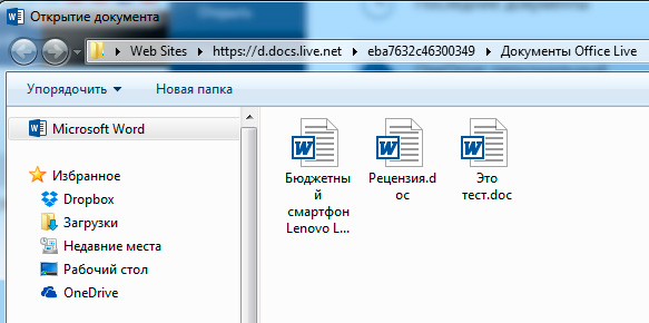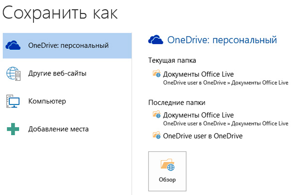 Ну и далее сохраняете свой документ, например, в папке "Документы Office Live". Или создаете в OneDrive для этого какую-то другую папку - как вам удобно.
