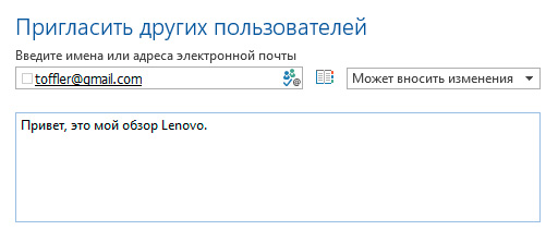 Там введите адрес того человека (людей), который должен прочитать и отредактировать вашу статью, после чего нажмите кнопку "Общий доступ".