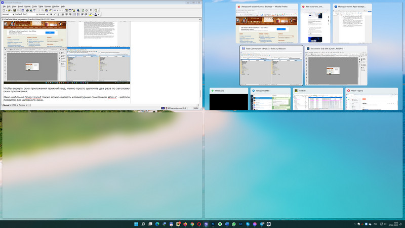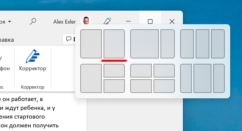 Окно шаблонов Snap Layout также можно вызвать клавиатурным сочетанием Win+Z - шаблон появится для активного окна.