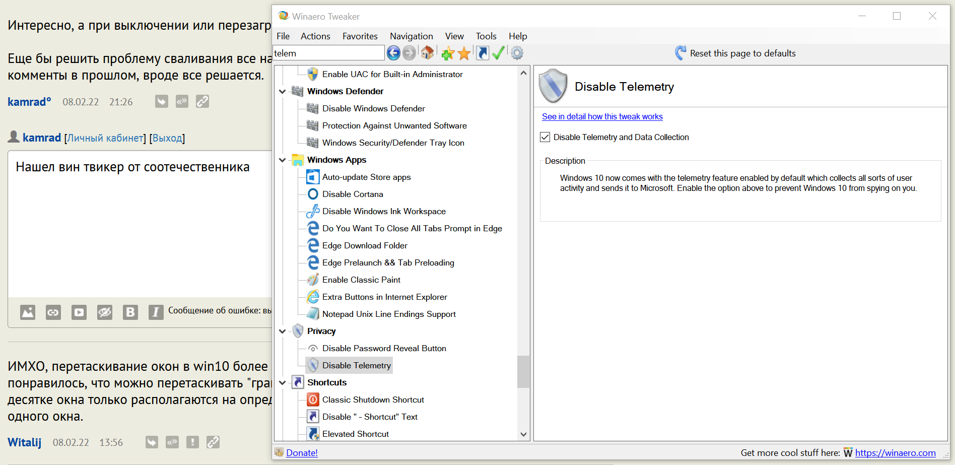 вин и стрелка можно еще окна между мониторами гонять. а если окно кинуть право-влево (например), то при отжатии клавиши "вынь" появляются картинки остальных окон и можно мышью выбрать окно на вторую половину сразу. И при двух окнах рядом можно менять взаимную ширину мышью. В общем, как по мне, инструментарий для расположения на экране одновременно нескольких окон в вынь 10 достаточно развитый. А если знать про всякие приблуды того экселя, чтобы смотреть разные части файла или несколько файлов одновременно, то вообще красота.