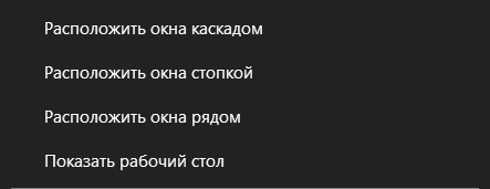 В предыдущих версиях Windows при правом клике мыши на свободном месте панели задач появлялось выпадающее меню, в котором были представлены некоторые возможности по организации окон.