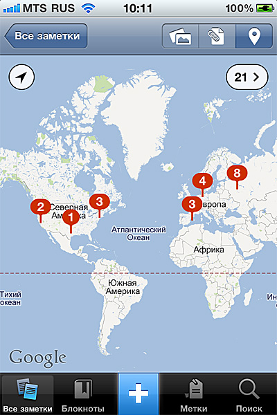 5. Поддержка местоположения. Если коммуникатор или планшет имеют модуль GPS, то в заметке автоматически указываются координаты - это потом облегчает поиск.
