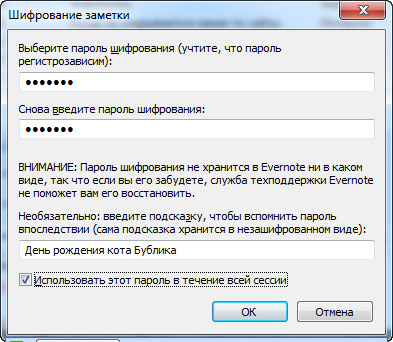 Любую заметку или ее часть можно зашифровать - вам предложат выбрать пароль и подсказку для него.